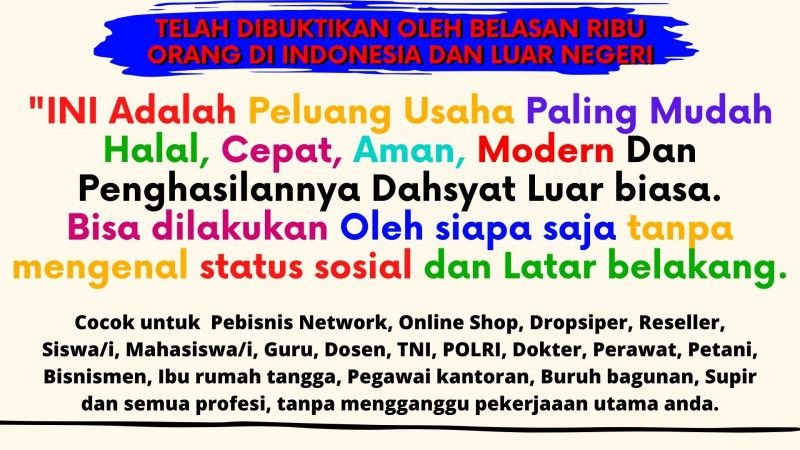 Banyak bisnis berseliweran diluar sana yang menawarkan hasil yang fantastis, namun anda harus keluargakn biaya yang mahal yaitu ratusan ribu hingga jutaan dengan cara kerja dan system yang rumit, namun diplatform uang instan ini anda cukup keluarkan 15 ribu sekali seumur hidup dengan SYSTEM YANG SUPER SIMPLE, TUGAS ANDA HANYA DAFTAR DAN SEBAR LINK REFERRAL SAJA, SELAIN ITU BIARKAN SYSTEM YANG BEKERJA.
